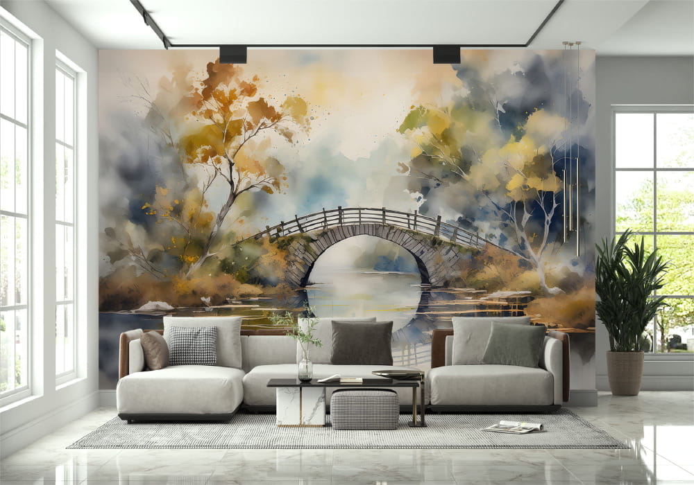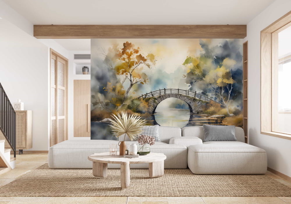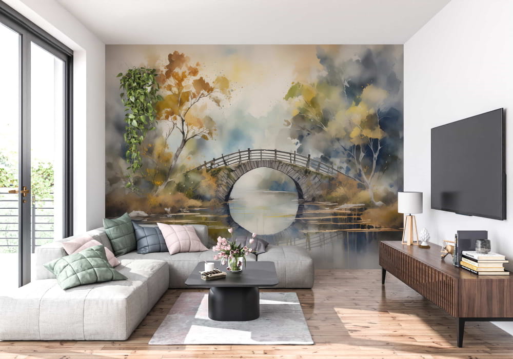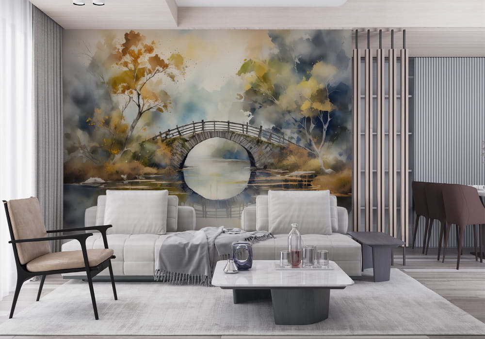 Tranquil Crossing - AI Art Wall Mural for Contemporary Interiors