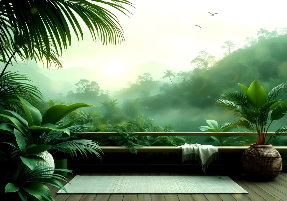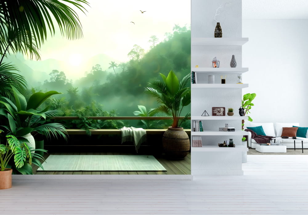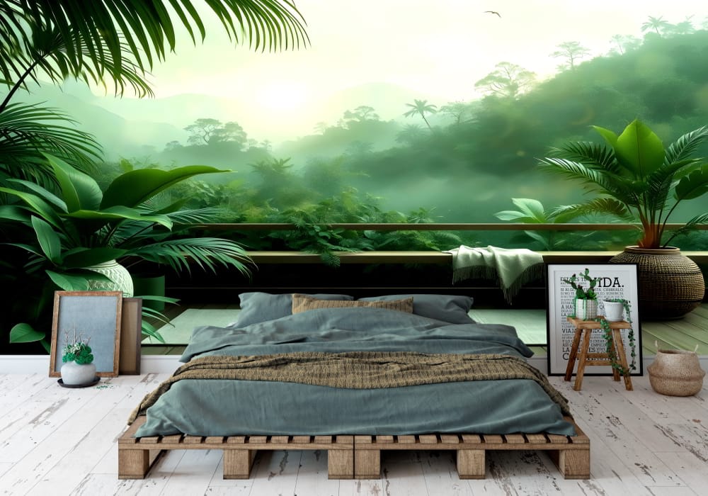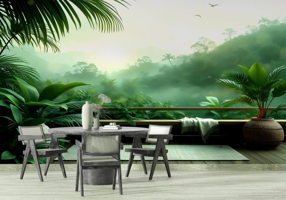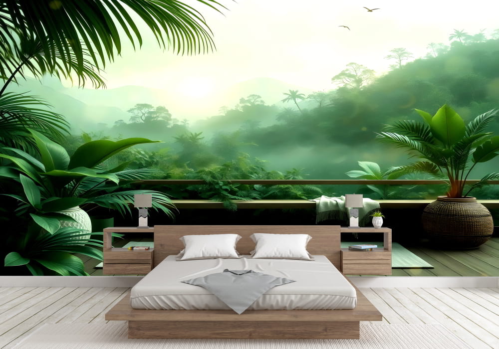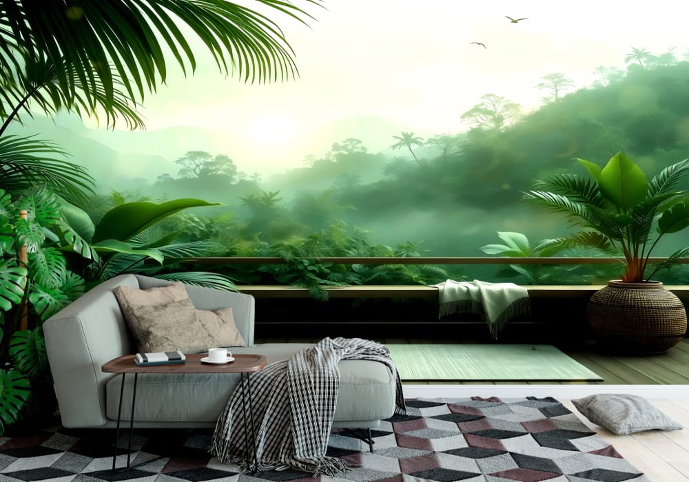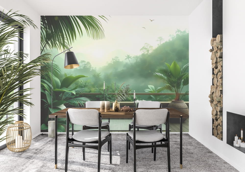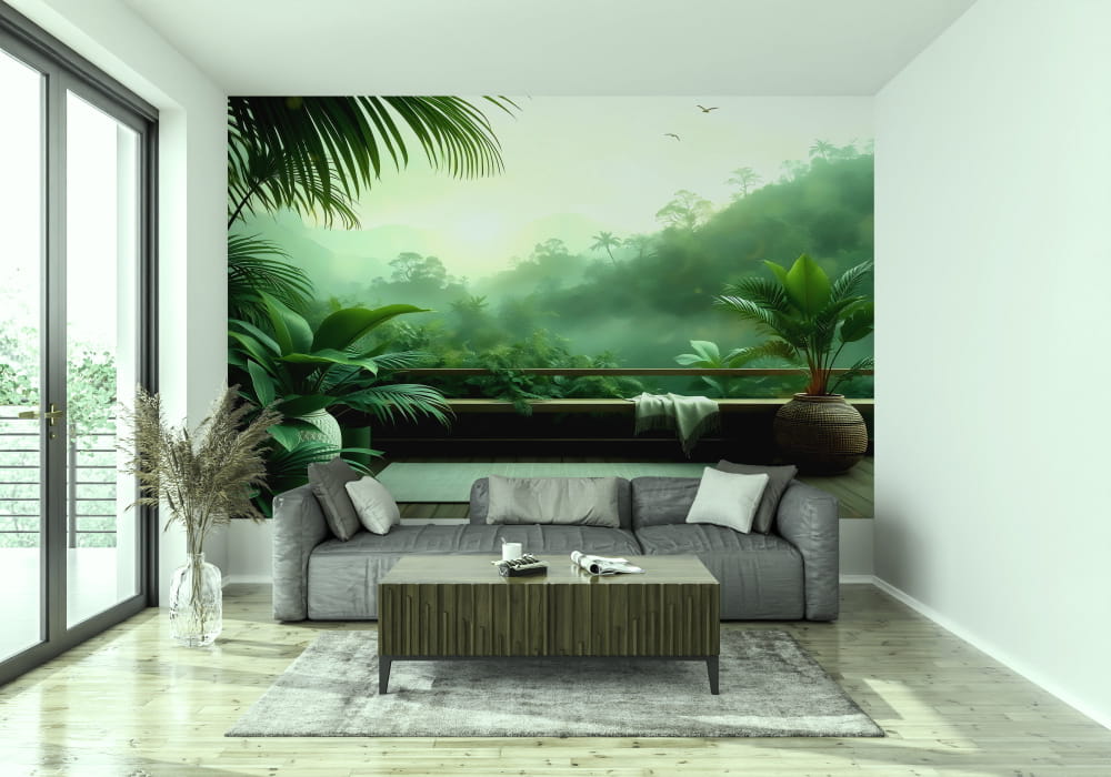 Tropical Morning Mist - AI Art Wall Mural for Contemporary Interiors