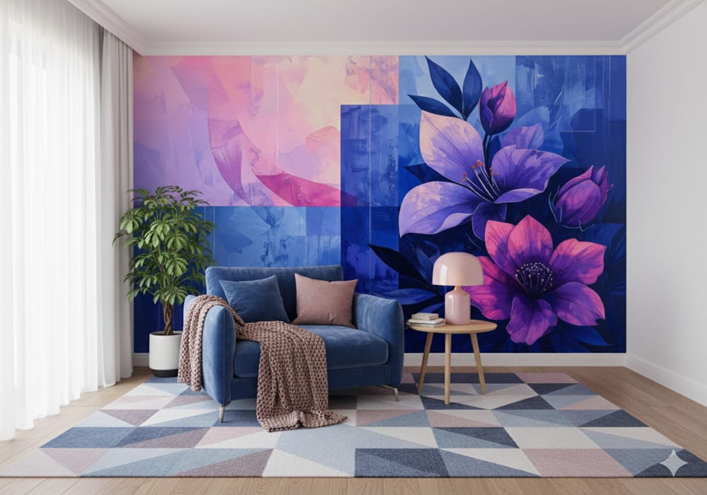 Twilight Bloom - AI Art Wall Mural for Contemporary Interiors