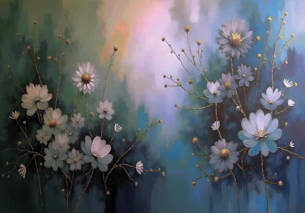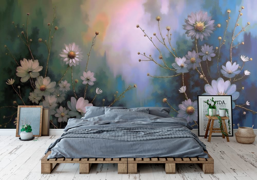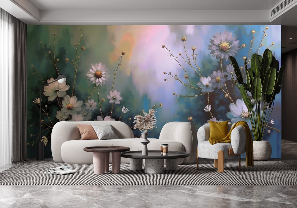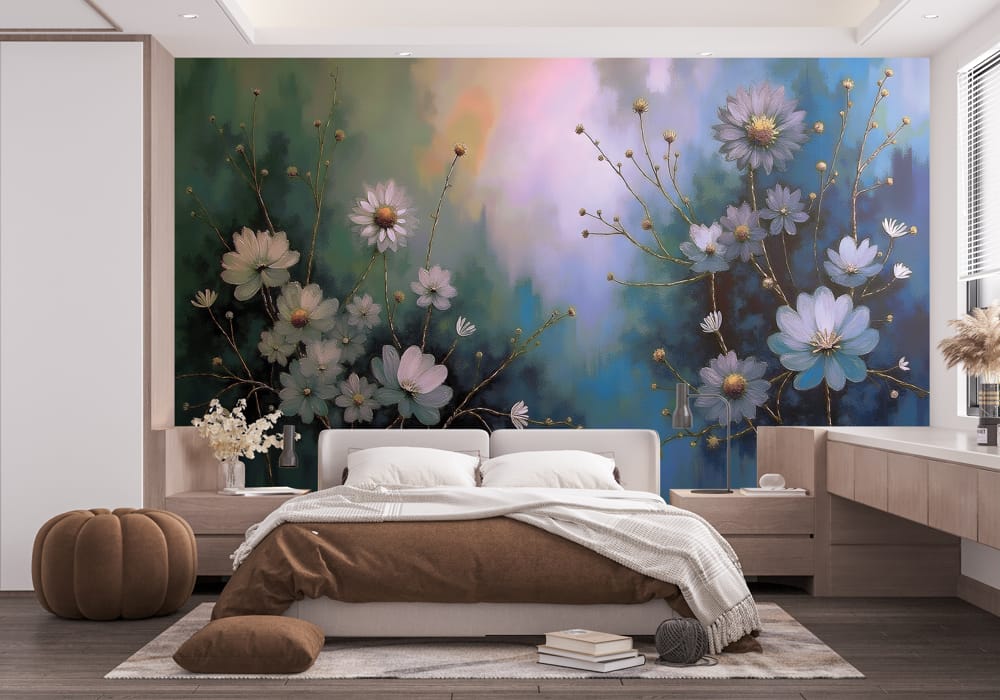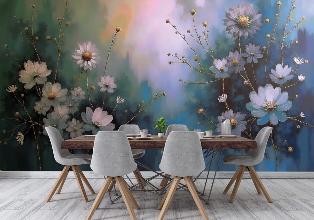 Twilight Blue Floral - AI Art Wall Mural for Contemporary Interiors