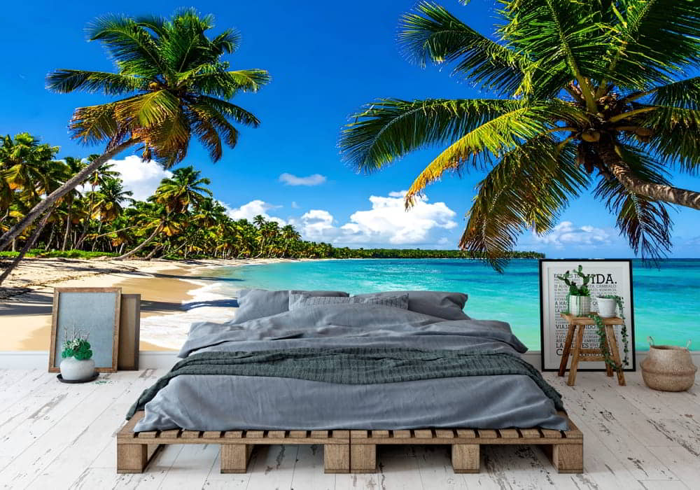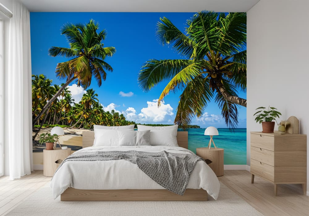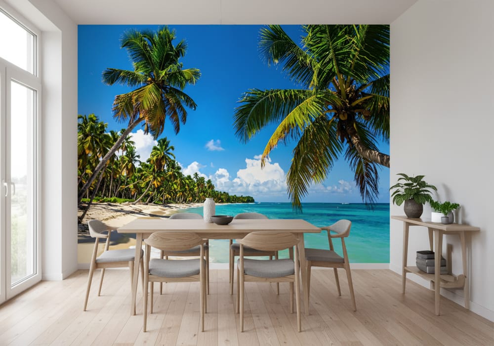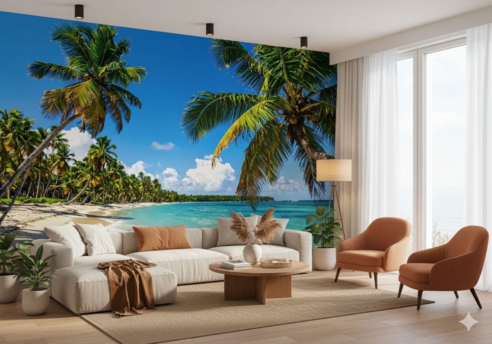 Vibrant Tropical Beach - AI Art Wall Mural for Contemporary Interiors