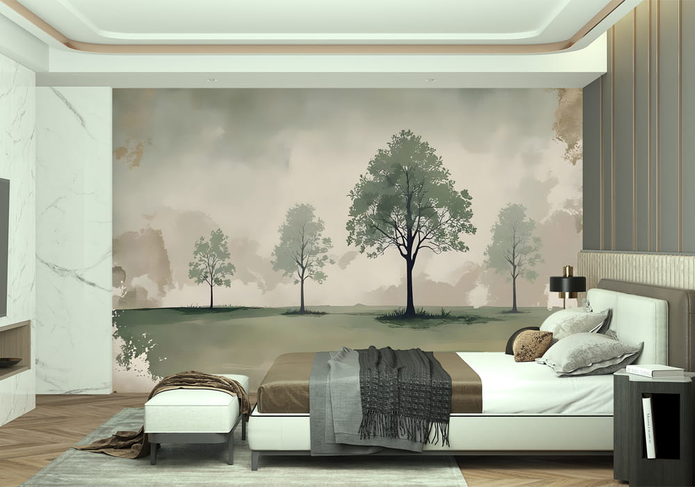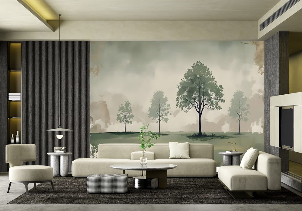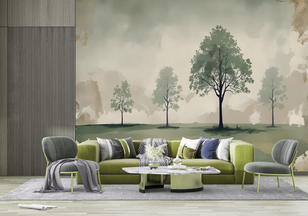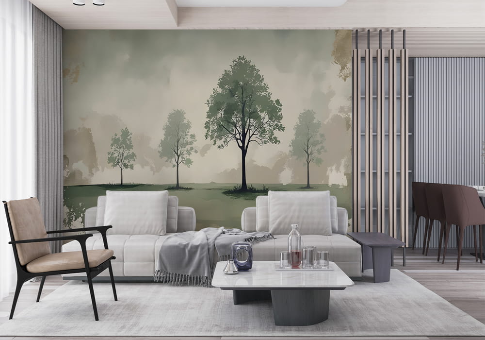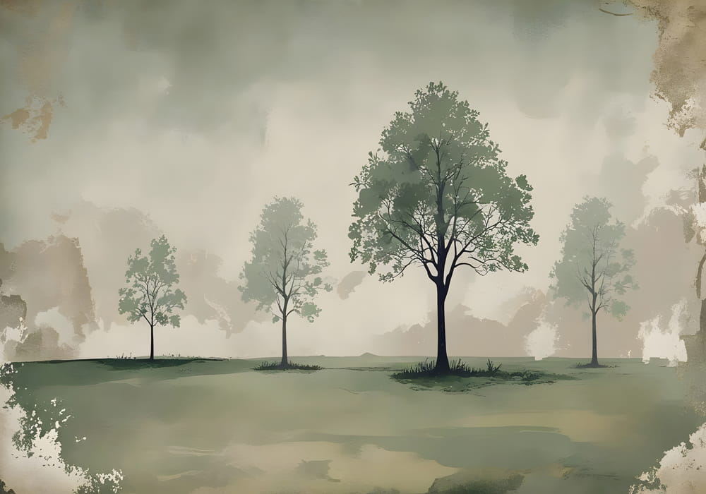 Vintage Landscape with Trees - AI Art Wall Mural for Contemporary Interiors