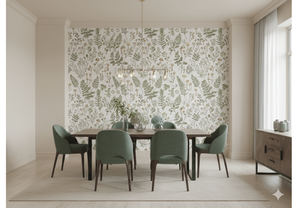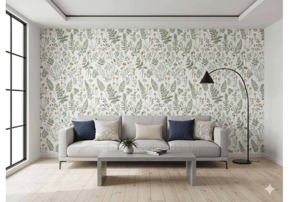 Transform your space into a serene sanctuary with Whispers of Nature. This design explores a botanic..